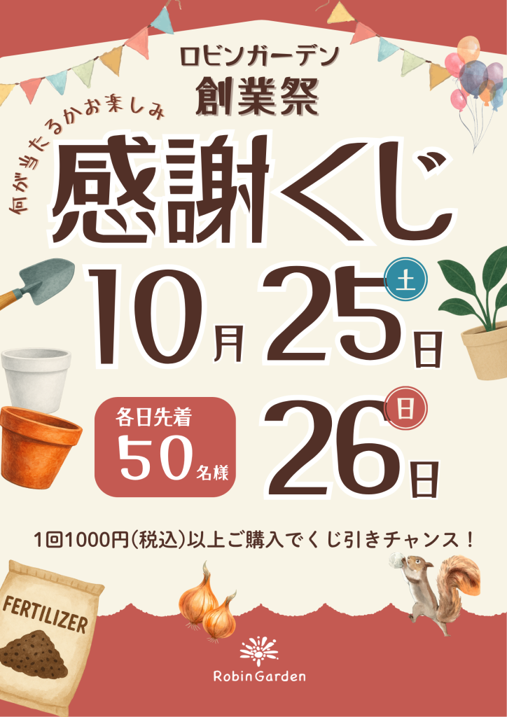 10/25.26 ロビンガーデン創業祭 感謝くじ開催!